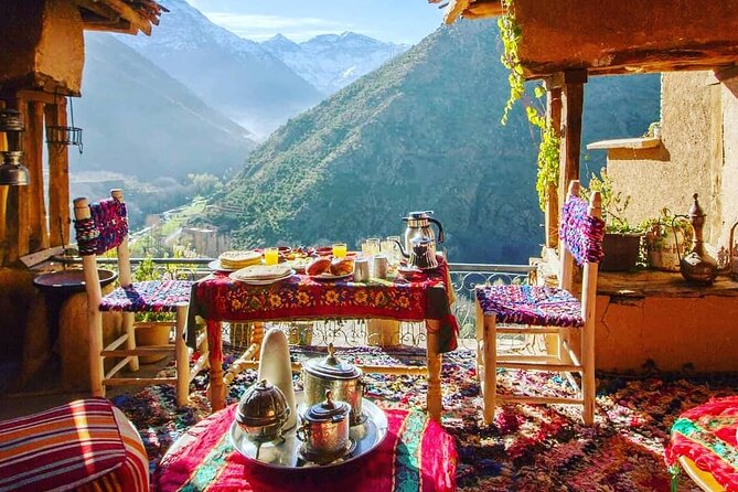 •  Enjoy a traditional Berber meal at the renowned Kasbah du Toubkal with breathtaking mountain vistas.